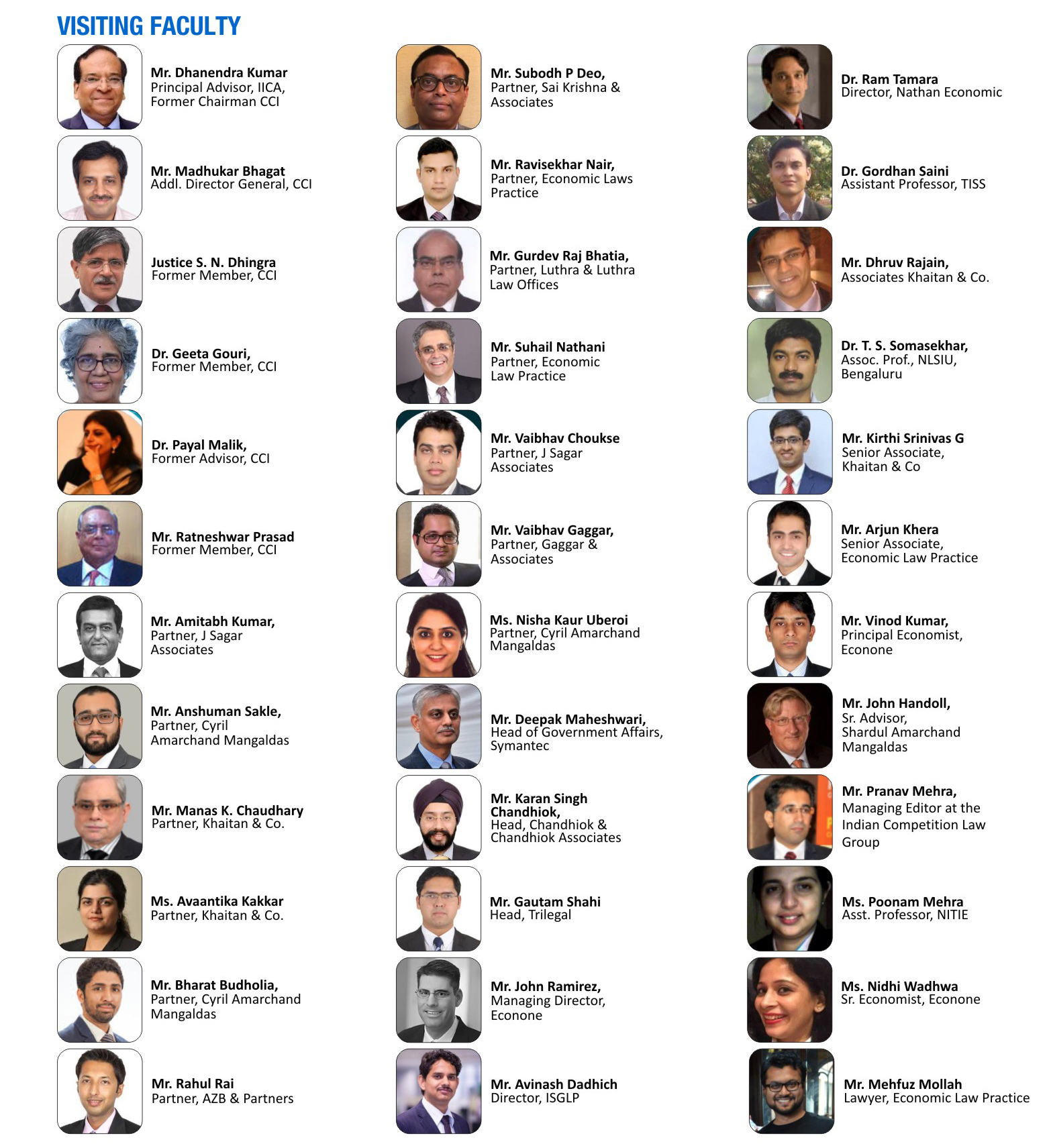 “A very high quality and well-designed course that meets the need of law students as well as working professionals. Interaction with, and guest lectures by, competition law experts from the CCI and various law firms makes this course incredibly insightful.” – “Imparting academic excellence on the Competition Law and Economics to professionals and University students has been pioneered by the IICA commendably. My heartfelt greetings to the leadership of the IICA for this great endeavour.” – "This course is highly useful for those who really wants to understand the finer details of competition law and practice it their organizations. The course provides an in-depth understanding of legal framework of competition in India through an innovative pedagogy which is a blend of online and in-person sessions. In-person sessions by the leading practitioners in this field is a unique aspect of this course which enhances the learning experience enormously." “These courses enable participants from a range of backgrounds to acquire a good academic and practical knowledge of competition law in India. The diverse faculty – drawn from academia, the institutions and legal practice - allows the subject to be seen from various perspectives. Practical exercises test the mettle of participants. Successful participation in these prestigious courses will give a good grounding in competition law and practice. It has been a real pleasure to help teach this course over the past few years and see students enthusiastically develop and apply their knowledge in this field." “Competition law can be viewed as the implementation of economic policy to ensure competition in the economy. It is therefore important to understand the economic concepts that underlie competition law, which include the structure of markets and nature of competition between firms. Understanding these economic principles is key to both industry participants who must calibrate their behaviour to ensure compliance with the law, and legal counsel who must assess the extent to which a firm’s behaviour had an adverse impact on competition. This course provides a solid basis in these economic concepts.” "The course is extremely well structured, Blending the academic and practical aspects of competition enforcement in India. It was a delight to teach one of the modules of this course. I found the class consisting of consisting of officials from private and public sector; lawyers; regulators; students etc to bring in their own perspectives to the classroom- making for a lively discussion." “Rapid developments in technology and the emergence of innovative business paradigms digital based and of neural markets have presented challenges to defining competition itself. Traditional economic structures embedded in competition law are out of sync with these developments. Effective market regulation rests on a law in tune with changing market dynamics. The paradigm shift in markets must reflect in the law. Courses that harmonize dynamics of modern markets with competition law is a must if at least to understand what needs to be regulated and what is best left to market forces.”